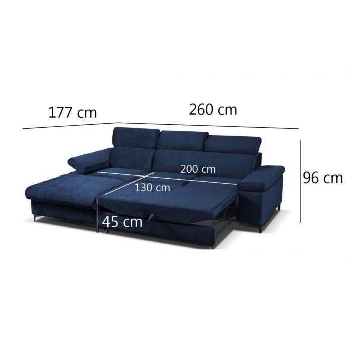 Sofa narożna Avanti to najbardziej praktyczny mebel, który będzie pasował do salonu, ale znajdzie swoje miejsce również w innym pomieszczeniu. Nowoczesne narożniki rozkładane to doskonały wybór na długie lata. Funkcja spania to szczególnie ważne i świetne rozwiązanie, które zapewni miejsce snu w komfortowych warunkach. Powierzchnia spania wynosi 130x200cm. Avanti posiada jeden pojemnik na pościel, a system rozkładania typu wózek to szybki, prosty i wygodny sposób rozkładania.