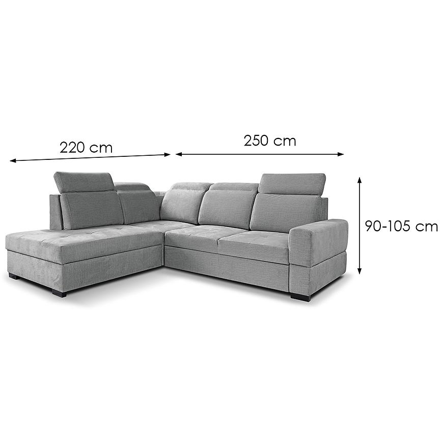 Narożnik Axel L Voss 07 w wersji lewostronnej to elegancki narożnik średniej wielkości w modnym szarym kolorze. Wyposażony w komfortowe siedzisko ze sprężyną falistą i regulowany zagłówek, a także praktyczny pojemnik na pościel. Posiada funkcję spania o powierzchni 125x180 cm oraz wygodny system rozkładania delfin. Kształt litery L i solidne czarne nogi sprawiają, że jest idealnym wyborem do nowoczesnego salonu.