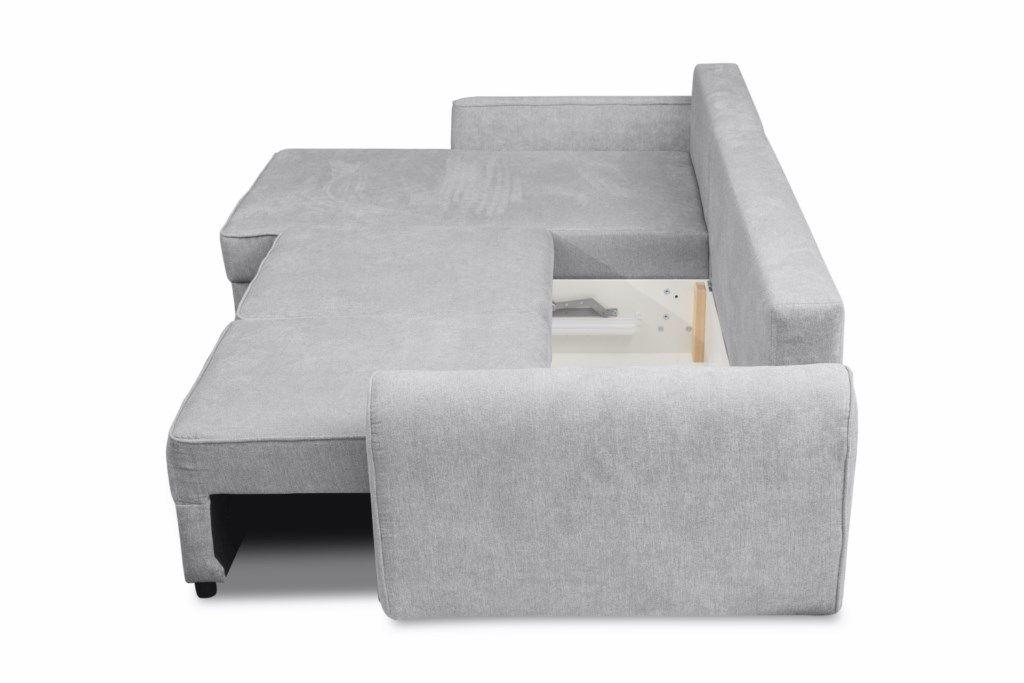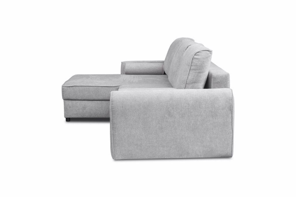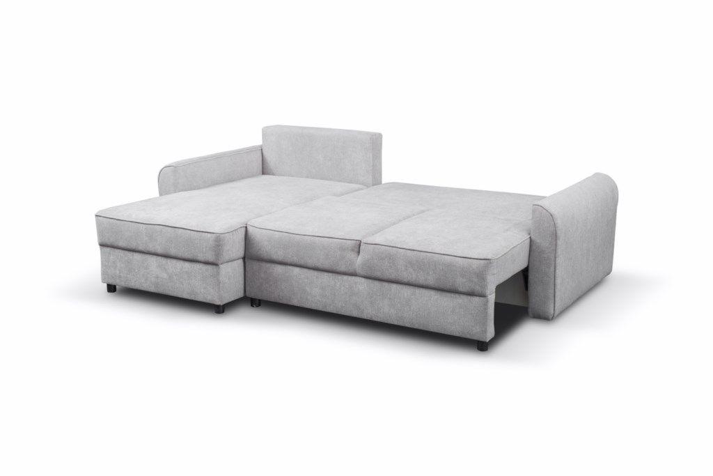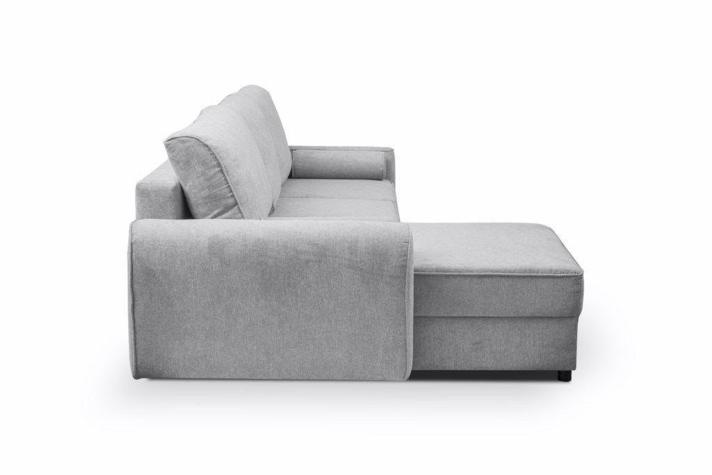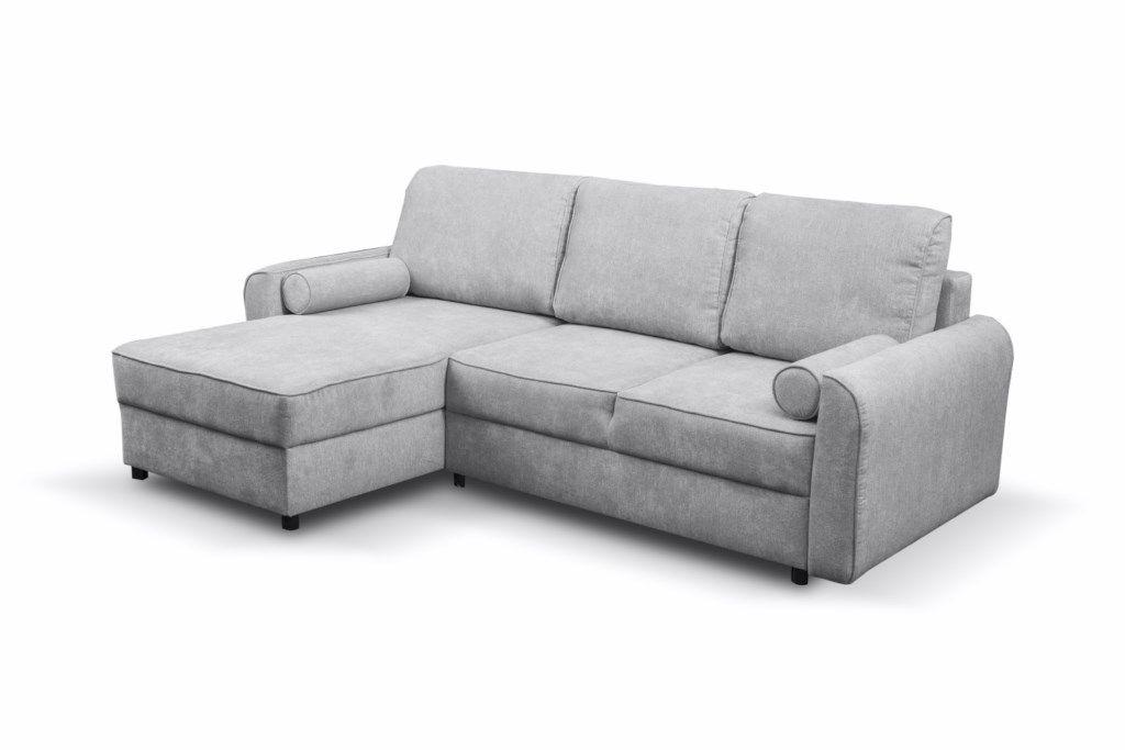 Narożnik Belluno dostępny w dwóch kolorach, różowy i popielaty. Narożnik z funkcją spania typu DL oraz z pojemnikiem na pościel, uniwersalny. Po rozłożeniu powierzchnia spania o wymiarach 128x212 cm. W komplecie mebla są 3 duże poduszki oparciowe oraz dwa ozdobne wałki. W siedzisku i oparciu zastosowano sprężyny faliste oraz piankę. Wymiary paczek: 1/3. 71x134x98; 2/3.55x148x86; 3/3. 15x30x13 cm.