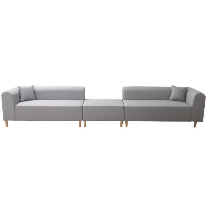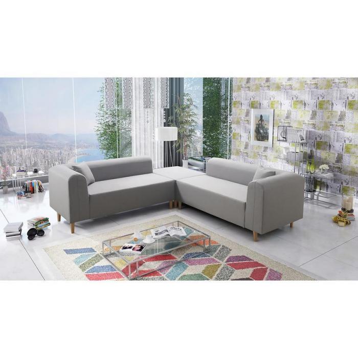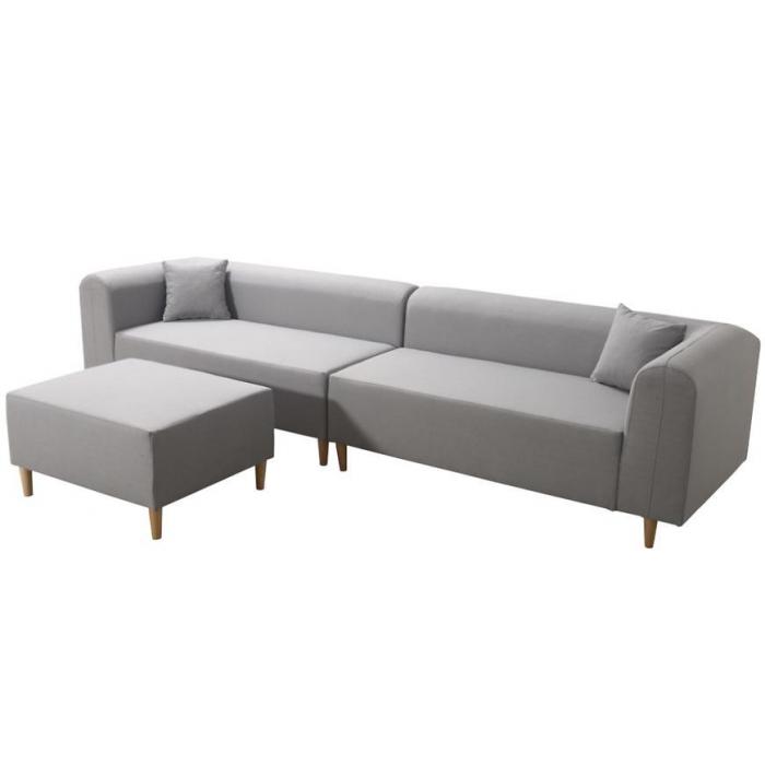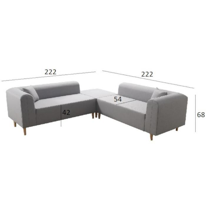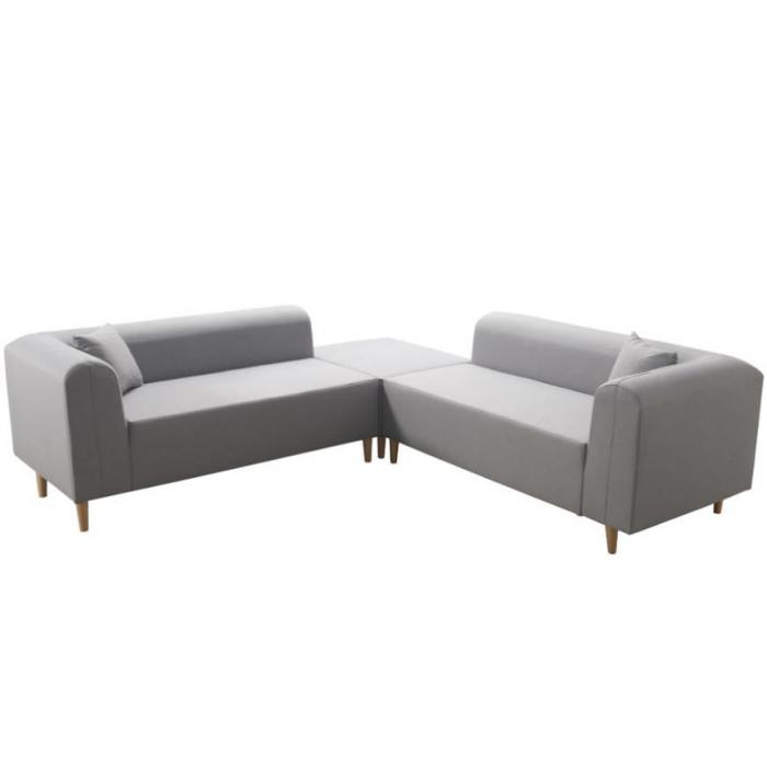 Narożnik jest tapicerowany tkaniną w kolorze szarym. Jasne drewniane nóżki nie tylko stabilizują całą konstrukcję, ale nadają jej lekkości mimo sporego gabarytu. Świetnie sprawdzi się nie tylko w salonie, ale także innym pomieszczeniu - np. poczekalni czy biurze. Całość z pewnością wpisze się w aranżację w stylu skandynawskim, ale także modernistyczne wnętrza.