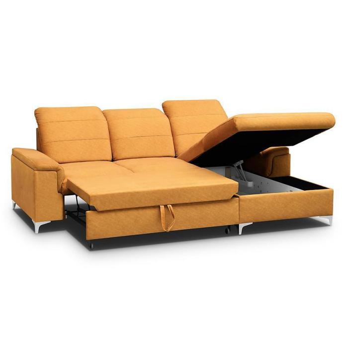 Narożnik Bergamo Mini Zetta z funkcją spania został pokryty tkaniną . Prostotę i łatwość użytkowania gwarantuje automat ułatwiający rozkładanie i system rozkładania typu delfin. Jest to szybki, prosty i wygodny sposób rozkładania. Jest jednym z najbardziej popularnych systemów rozkładania, który jest wykorzystywany w narożnikach. Po rozłożeniu to okazjonalne miejsce do spania o wymiarach 140x198 cm. Mebel posiada pojemnik, do którego można schować pościel, dodatkowe koce czy też poduszki. W siedzisku zastosowano sprężynę falistą, która dostosowuje się do ciężaru i kształtu ciała, zapewniając tym samym wysoki komfort siedzenia. Ten niepowtarzalny mebel wypoczynkowy stworzono z myślą o funkcjonalności i eleganckim wyglądzie. Narożnik dostępny w wersji prawostronnej i lewostronnej.