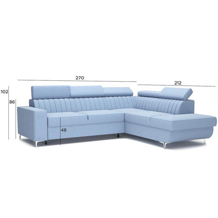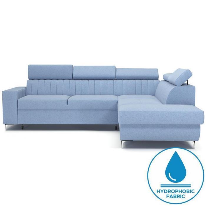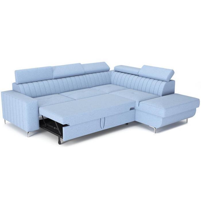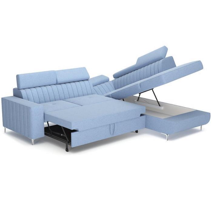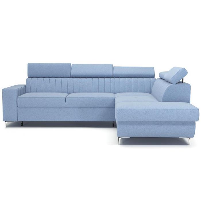 Narożnik z funkcją spania okazjonalnego z pewnością sprawdzi się nie tylko w pokoju dziennym, ale także innym pomieszczeniu - np. pokoju młodzieżowym czy sypialni. Ruchome zagłówki oraz lekko profilowane opieradło zapewnią wysoki komfort podczas wypoczynku.