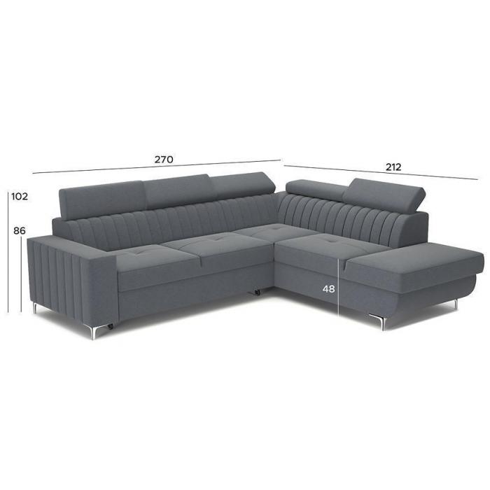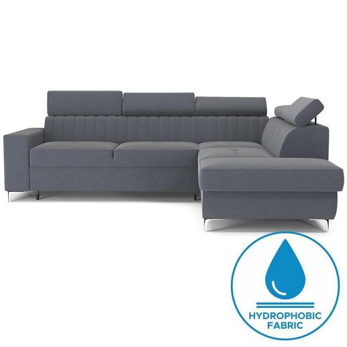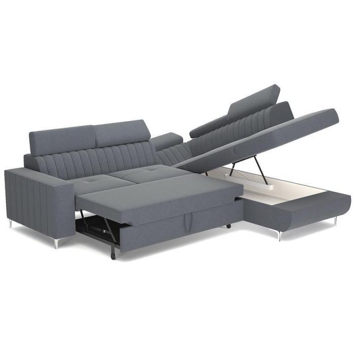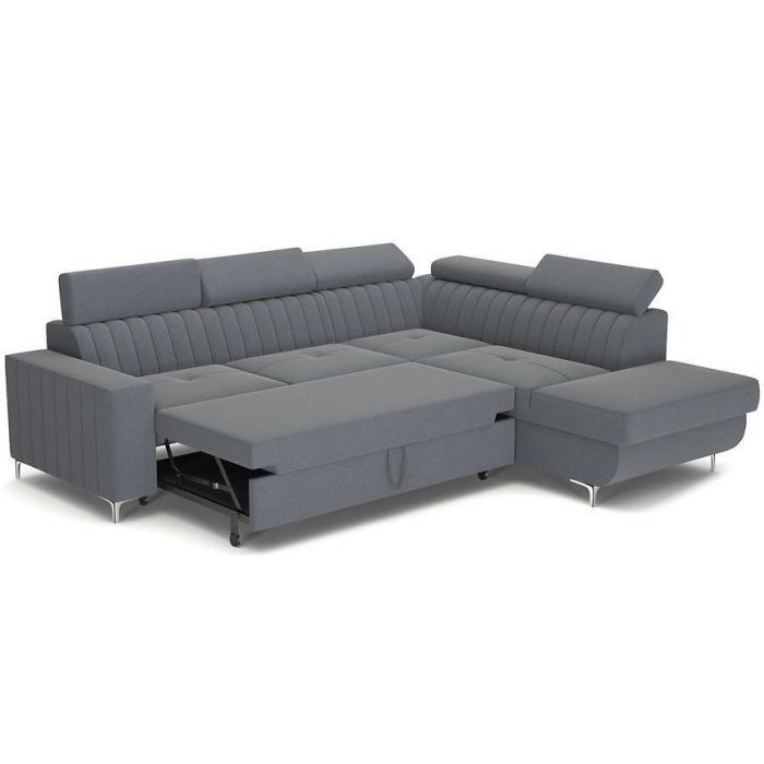 Narożnik z funkcją spania okazjonalnego z pewnością sprawdzi się nie tylko w pokoju dziennym, ale także innym pomieszczeniu - np. pokoju młodzieżowym czy sypialni. Ruchome zagłówki oraz lekko profilowane opieradło zapewnią wysoki komfort podczas wypoczynku.