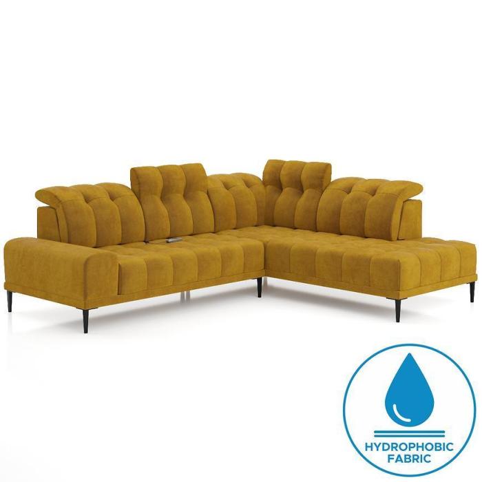 Kanapa narożna z kolekcji Grenada jest w kształcie litery L i świetnie wpasuje się zarówno do pokoju dziennego jak i salonu.