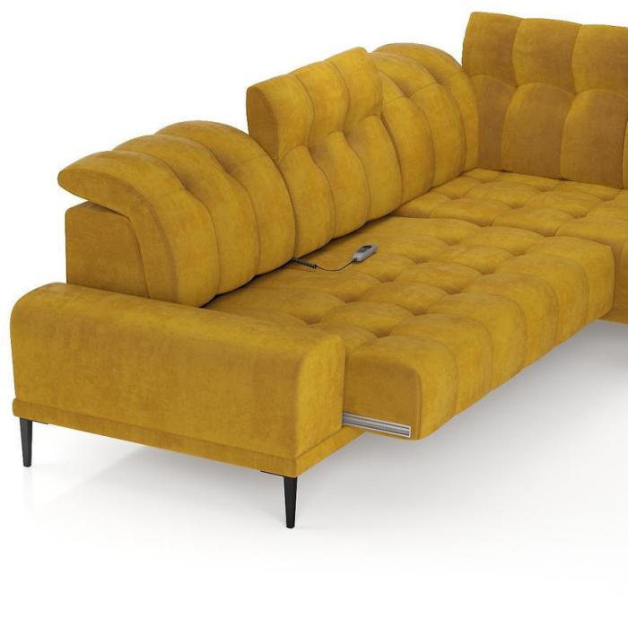 Sofa narożna Grenada to najbardziej praktyczny mebel, który będzie pasował do salonu, ale znajdzie swoje miejsce również w innym pomieszczeniu. Nowoczesne narożniki to doskonały wybór na długie lata. Posiada ozdobne pikowania na siedzisku oraz oparciu. Dodatkową wygodę i komfort użytkowania zapewnią regulowane zagłówki.