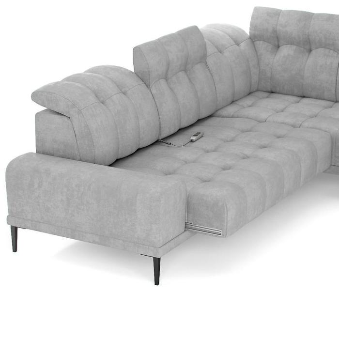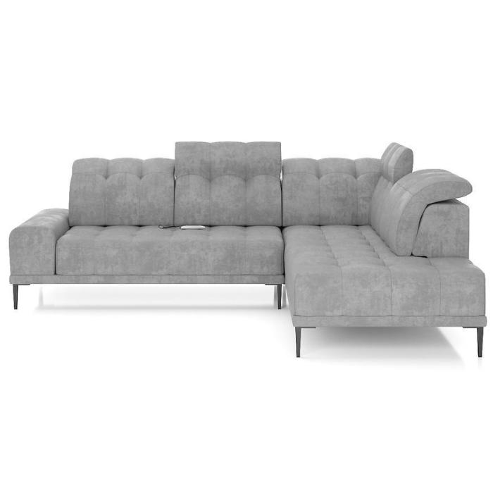 Sofa narożna Grenada to najbardziej praktyczny mebel, który będzie pasował do salonu, ale znajdzie swoje miejsce również w innym pomieszczeniu. Nowoczesne narożniki to doskonały wybór na długie lata. Posiada ozdobne pikowania na siedzisku oraz oparciu. Dodatkową wygodę i komfort użytkowania zapewnią regulowane zagłówki.