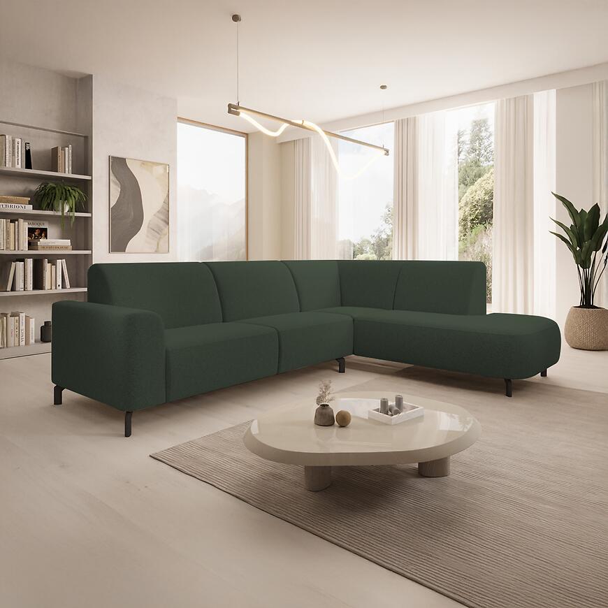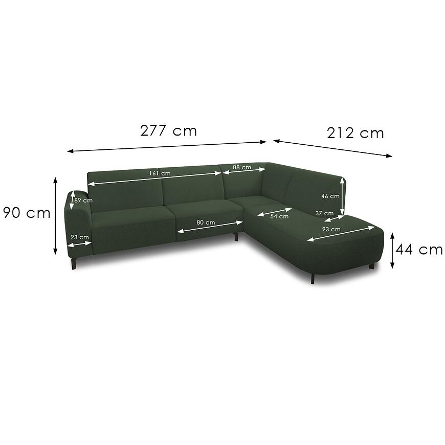 Narożnik Imperio B+2+Longue Eclipse 16 to średniej wielkości mebel modułowy w uniwersalnym układzie, idealny do salonu lub pokoju dziennego. Tapicerka w kolorze zielonym wykonana z trwałej tkaniny dodaje świeżości wnętrzu i zapewnia łatwość utrzymania czystości.