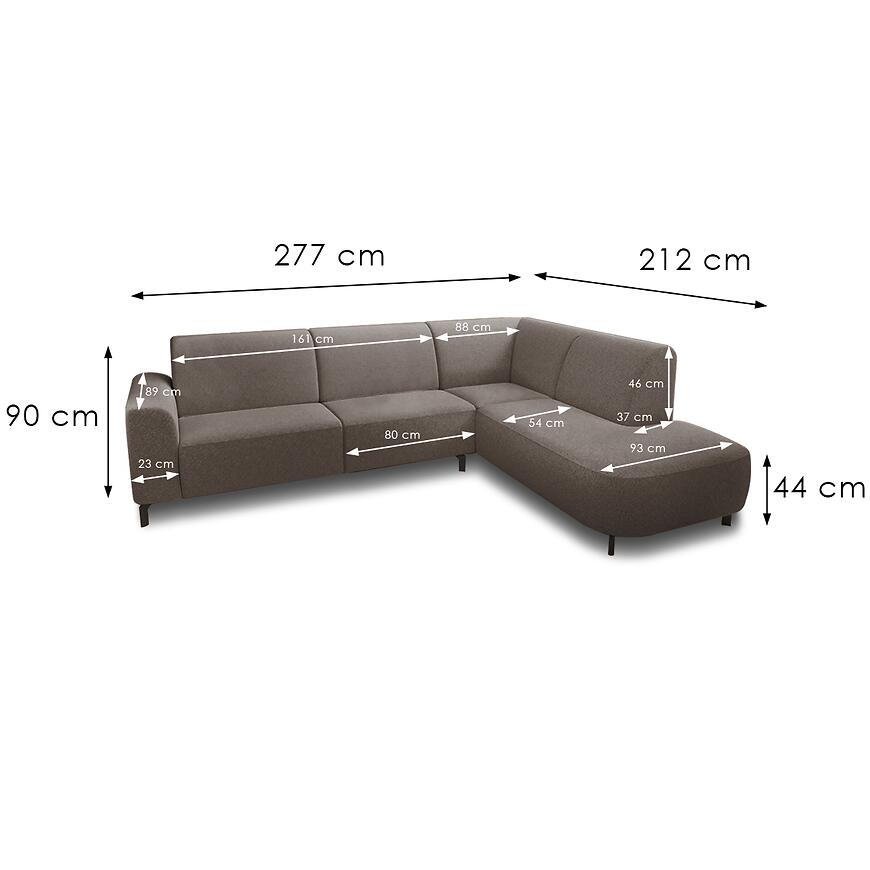 Narożnik jest nierozkładany i nie posiada funkcji spania ani pojemnika na pościel. Brak regulowanych zagłówków, podłokietników i oparcia podkreśla prostą, klasyczną formę mebla. Doskonały wybór dla osób poszukujących eleganckiego i komfortowego narożnika modułowego w uniwersalnym układzie.