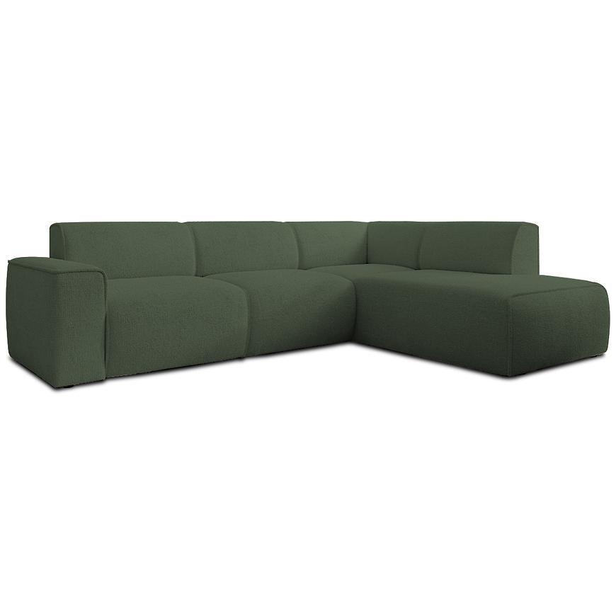 To świetna propozycja dla osób ceniących wygodę i estetykę w dużym narożniku o modnym, zielonym wykończeniu.