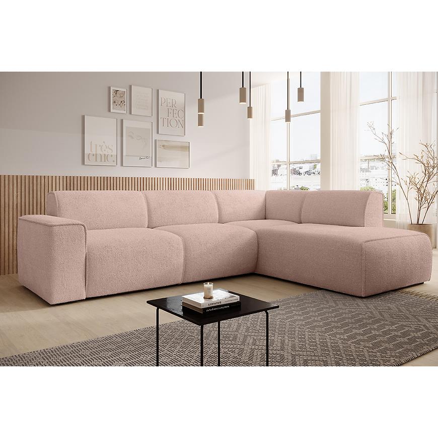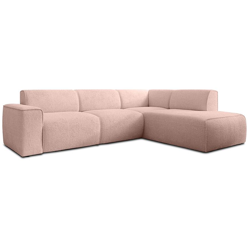 Model ten wyróżnia się eleganckim różowym kolorem, który wnosi do salonu ciepło i subtelną nutę wyrafinowanego stylu. Tapicerowany trwałą tkaniną, narożnik zapewnia estetyczny wygląd i łatwość w utrzymaniu czystości.