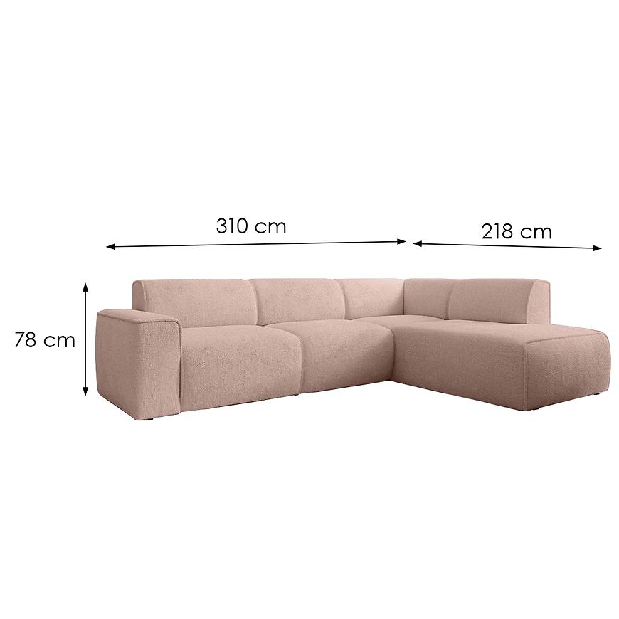 Narożnik bez funkcji spania Pado L Now or Never 61 prawy to stylowy i komfortowy mebel, który idealnie odnajdzie się w przestronnych, nowoczesnych wnętrzach. Jego duże wymiary – 310 cm szerokości i 218 cm głębokości – gwarantują wygodę nawet dla kilku osób jednocześnie, czyniąc go doskonałym miejscem do codziennego wypoczynku.