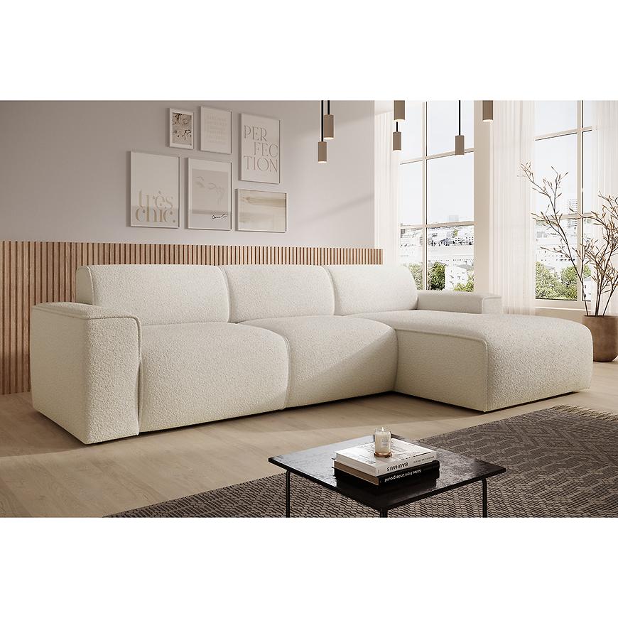 Narożnik Pado Now or Never 03 w wersji prawej to elegancki, duży mebel wypoczynkowy, zaprojektowany z myślą o nowoczesnych wnętrzach. Jego ponadczasowy beżowy kolor i klasyczny kształt litery L doskonale komponują się zarówno z jasnymi, jak i ciemniejszymi aranżacjami salonu.