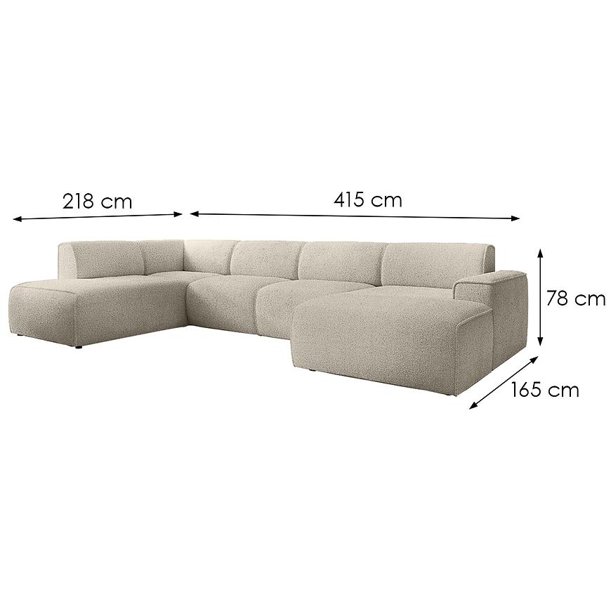 Narożnik bez funkcji spania Pado U Now or Never 03 lewy to propozycja dla osób poszukujących dużego, komfortowego i stylowego mebla wypoczynkowego. Jego imponujące wymiary — 415 cm szerokości oraz 165/218 cm głębokości — czynią go idealnym wyborem do przestronnych salonów, gdzie pełni funkcję głównego punktu aranżacyjnego.