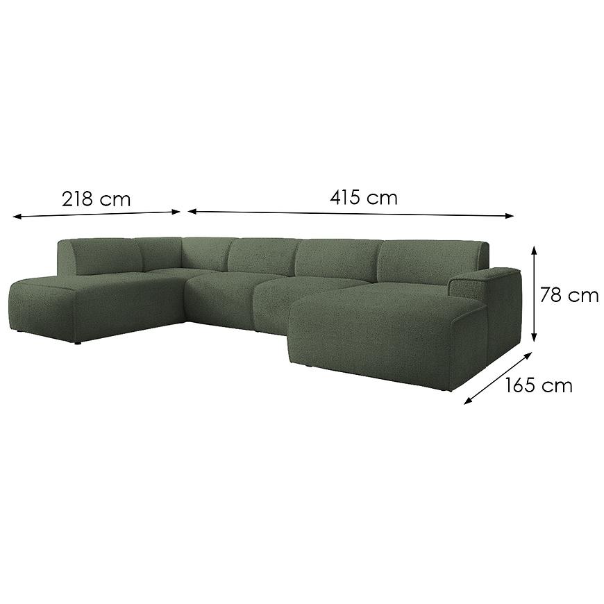 designu i przestronnych rozwiązań wypoczynkowych. Imponujący rozmiar – 415 cm szerokości i 165/218 cm głębokości – sprawia, że mebel doskonale sprawdzi się w dużych salonach, oferując mnóstwo miejsca do relaksu dla całej rodziny.