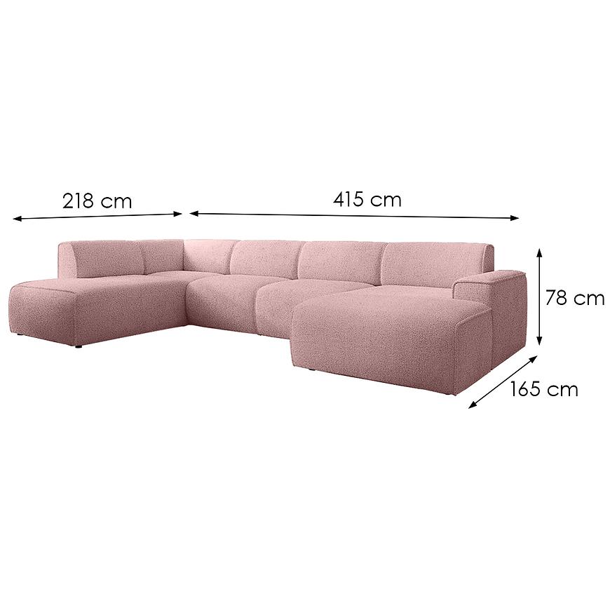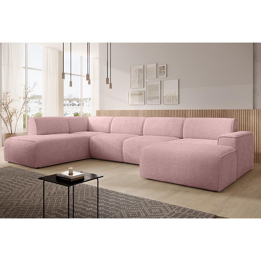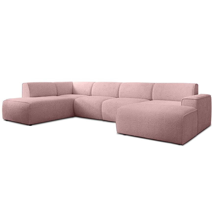 Narożnik bez funkcji spania Pado U Now or Never 61 lewy to nowoczesny mebel wypoczynkowy stworzony z myślą o przestronnych wnętrzach. Jego efektowny kształt litery U oraz pastelowy, różowy kolor sprawiają, że stanie się centralnym punktem każdego salonu, wprowadzając do niego lekkość i świeżość.