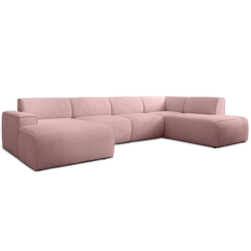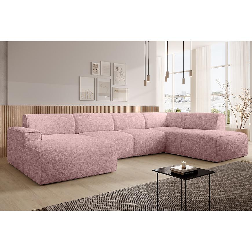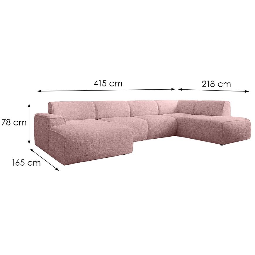 Narożnik bez funkcji spania Pado U Now or Never 61 w wersji prawej to mebel o bardzo dużych rozmiarach, idealny do przestronnych wnętrz. Jego szerokość wynosi 415 cm, a głębokość 165/218 cm, co zapewnia komfortowe miejsce do wypoczynku dla całej rodziny lub grupy znajomych. Tapicerka wykonana jest z miękkiej, przyjemnej w dotyku tkaniny w modnym różowym kolorze, który doda wnętrzu przytulności i nowoczesnego charakteru.