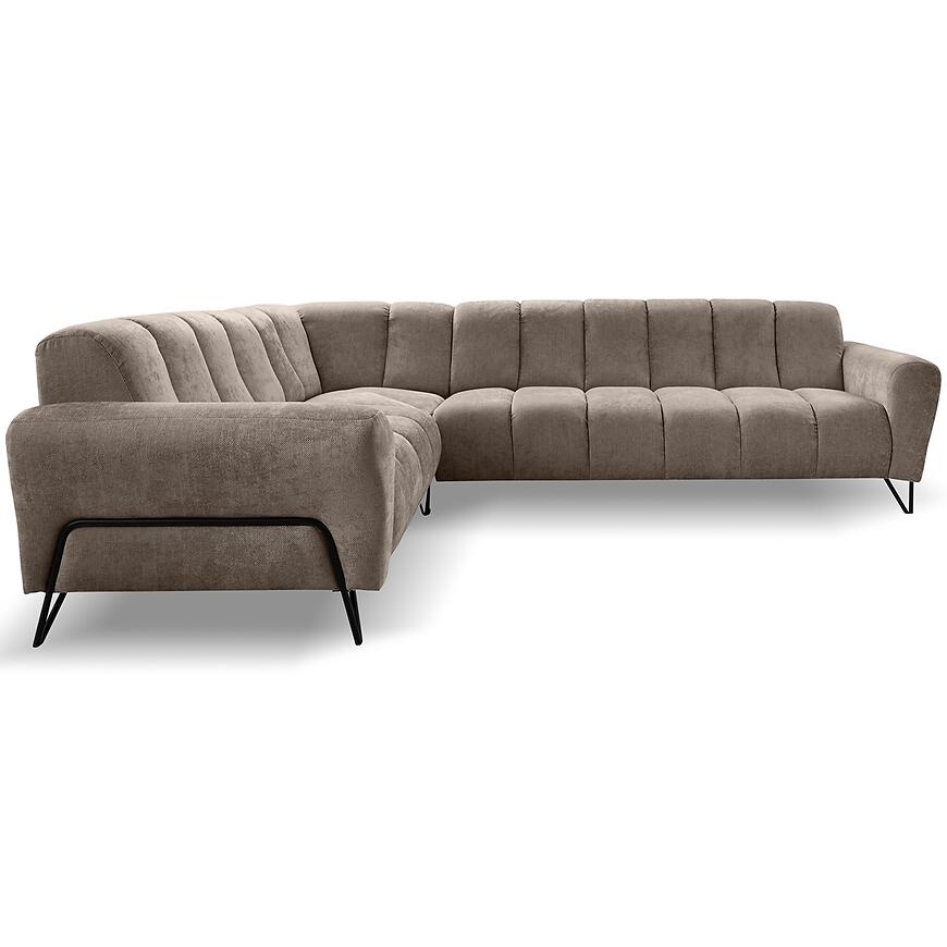 Siedzisko narożnika zostało zaprojektowane z myślą o maksymalnej wygodzie – wypełnienie stanowi połączenie sprężyny falistej z pianką HR, co zapewnia odpowiednie podparcie, elastyczność oraz długotrwały komfort użytkowania. Stabilną podstawę uzupełniają solidne nogi w kolorze czarnym, które dodają całości lekkości i podkreślają nowoczesny charakter mebla.