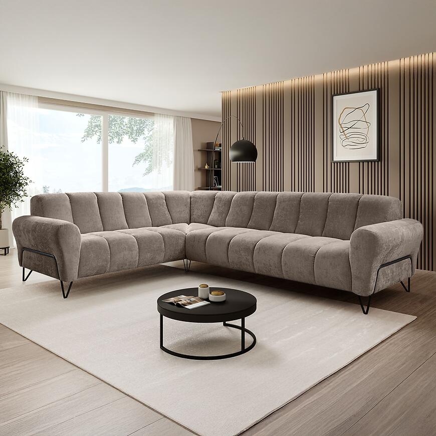 Narożnik Volare to elegancki i nowoczesny mebel, który doskonale sprawdzi się w każdym salonie, nadając mu wyjątkowego charakteru i komfortu. Wykonany z wysokiej jakości tkaniny, zachwyca swoją trwałością i estetyką, a jednocześnie jest przyjemny w dotyku. Konstrukcja narożnika w kształcie litery L pozwala na optymalne wykorzystanie przestrzeni, dzięki czemu mebel idealnie komponuje się zarówno w większych, jak i mniejszych wnętrzach.