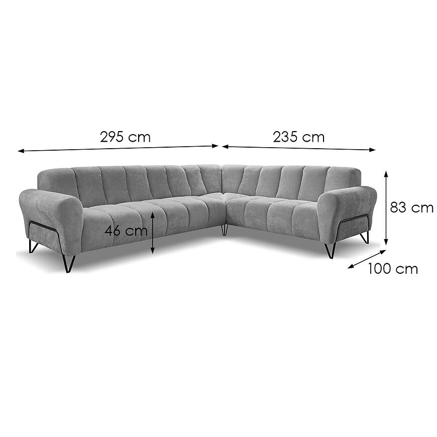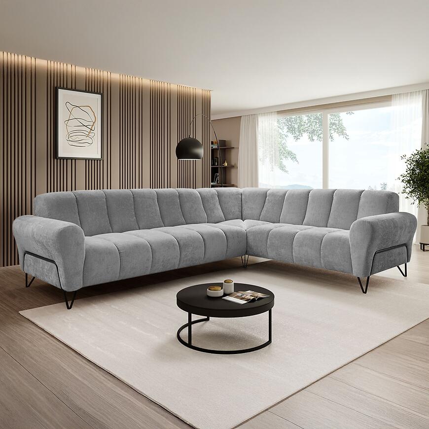 Narożnik Volare to elegancki i nowoczesny mebel, który doskonale sprawdzi się w każdym salonie, nadając mu wyjątkowego charakteru i komfortu. Wykonany z wysokiej jakości tkaniny, zachwyca swoją trwałością i estetyką, a jednocześnie jest przyjemny w dotyku. Konstrukcja narożnika w kształcie litery L pozwala na optymalne wykorzystanie przestrzeni, dzięki czemu mebel idealnie komponuje się zarówno w większych, jak i mniejszych wnętrzach.