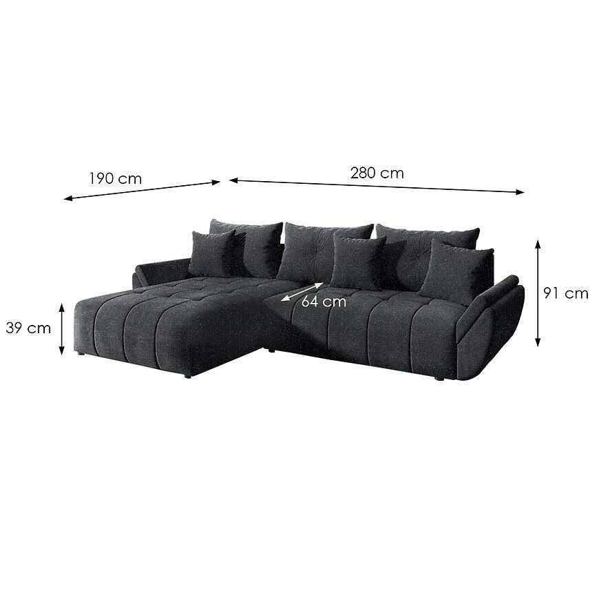 Narożnik Bono New Doha 20 to elegancki narożnik w nowoczesnym stylu, łączący komfort i funkcjonalność. Posiada funkcję spania o powierzchni 230×149 cm oraz praktyczny pojemnik na pościel, rozkładany mechanizmem DL. Tapicerowany trwałą szarą tkaniną, z wypełnieniem na sprężynie falistej, zapewnia wygodę codziennego użytkowania. Stabilne czarne nóżki podkreślają nowoczesny charakter mebla, a zestaw uzupełniają dopasowane poduszki dekoracyjne. Solidny i estetyczny wybór dla osób ceniących komfort i design.