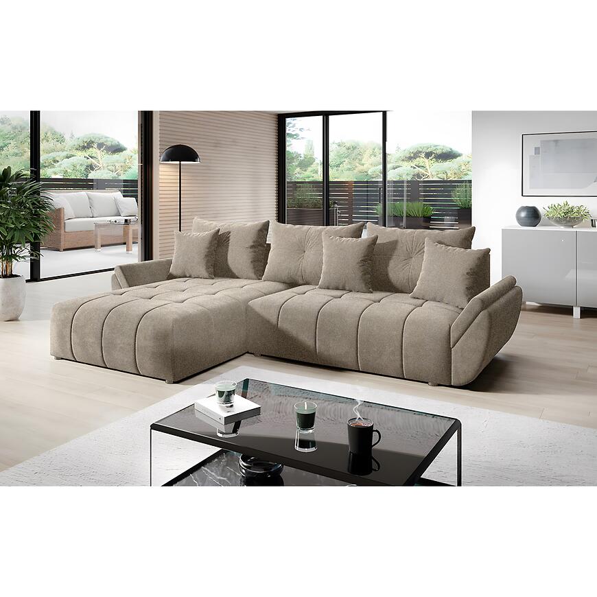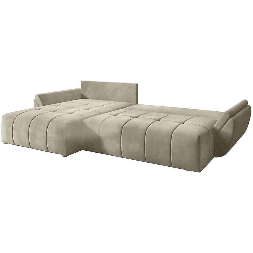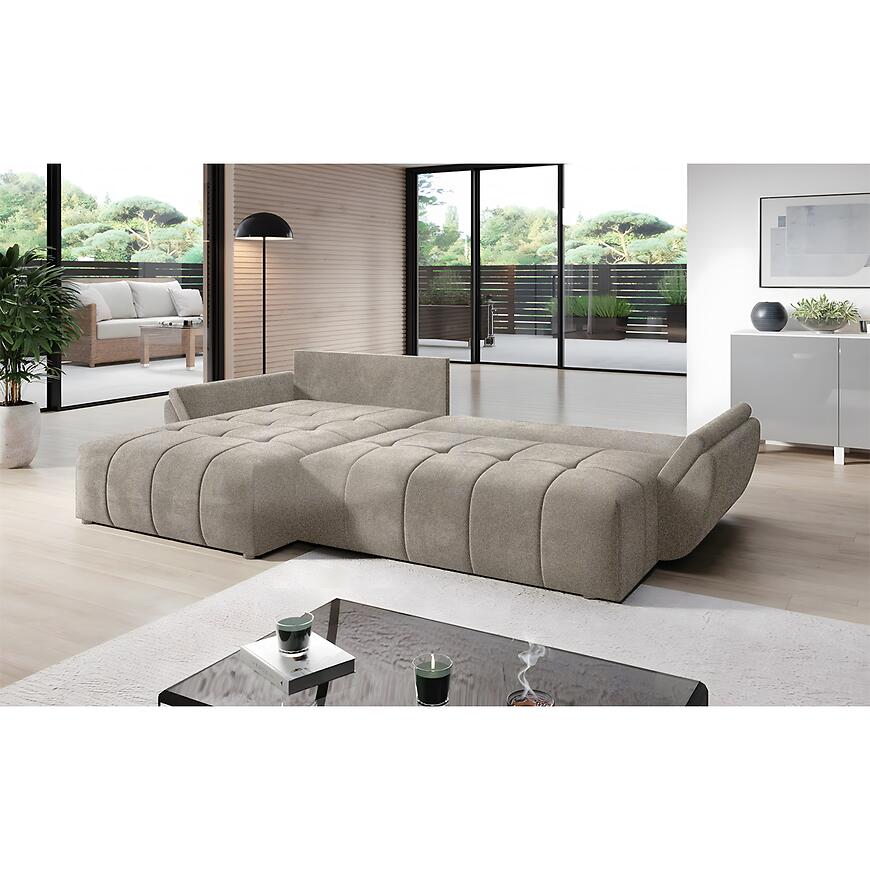 Narożnik Bono New Doha 3 to elegancki narożnik w nowoczesnym stylu, łączący funkcjonalność z wygodą. Posiada funkcję spania o powierzchni 230×149 cm oraz praktyczny pojemnik na pościel, rozkładany mechanizmem DL. Tapicerowany trwałą beżową tkaniną, z wypełnieniem na sprężynie falistej, zapewnia komfort codziennego użytkowania. Stabilne czarne nóżki dodają nowoczesnego charakteru, a w zestawie znajdują się dopasowane poduszki dekoracyjne. Solidny wybór dla osób ceniących komfort i estetykę.