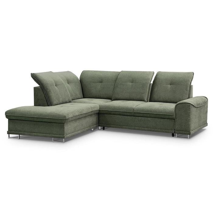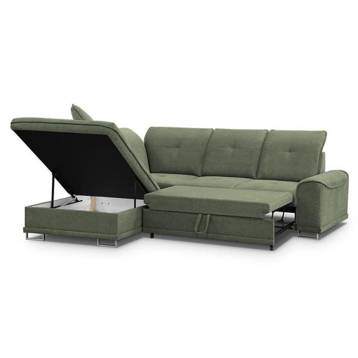 Narożnik BOSS to elegancja, wygoda i funkcjonalność. Jego bazowym kolorem jest zielony. Kanapa narożna rozkładana to mebel idealny do wspólnego wypoczynku z rodziną i znajomymi. Również doskonale wkomponuje się biurowe aranżacje. Nowoczesny narożnik w ponadczasowym stylu z funkcją spania wyposażony jest w sprężyny faliste. Warto podkreślić, że sofa narożna posiada regulowane zagłówki oraz oparcie co zapewnia jeszcze większy komfort. Średni narożnik z dwoma pojemnikami to idealne rozwiązanie, które świetnie sprawdzi się pokoju dziennym. Meble wypoczynkowe wyposażone w funkcję spania to doskonały wybór na długie lata, które zapewnią wysoki komfort podczas wypoczynku.