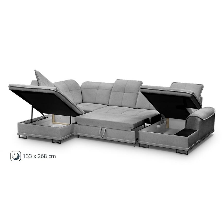 Narożnik BOSS to elegancja, wygoda i funkcjonalność. Jego bazowym kolorem jest szary. Kanapa narożna rozkładana to mebel idealny do wspólnego wypoczynku z rodziną i znajomymi. Również doskonale wkomponuje się biurowe aranżacje. Nowoczesny narożnik w ponadczasowym stylu z funkcją spania wyposażony jest w sprężyny faliste. Warto podkreślić, że sofa narożna posiada regulowane zagłówki oraz oparcie co zapewnia jeszcze większy komfort. Duży narożnik z dwoma pojemnikami to idealne rozwiązanie, które świetnie sprawdzi się pokoju dziennym. Meble wypoczynkowe wyposażone w funkcję spania to doskonały wybór na długie lata, które zapewnią wysoki komfort podczas wypoczynku.