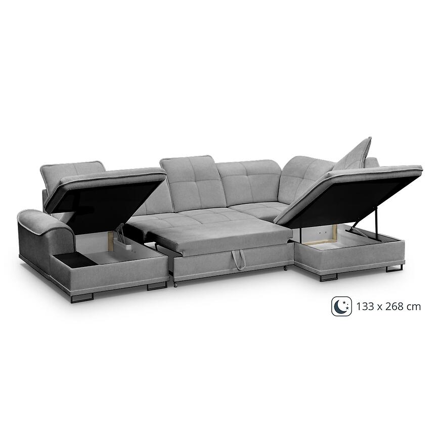 Narożnik BOSS to elegancja, wygoda i funkcjonalność. Jego bazowym kolorem jest szary. Kanapa narożna rozkładana to mebel idealny do wspólnego wypoczynku z rodziną i znajomymi. Również doskonale wkomponuje się biurowe aranżacje. Nowoczesny narożnik w ponadczasowym stylu z funkcją spania wyposażony jest w sprężyny faliste. Warto podkreślić, że sofa narożna posiada regulowane zagłówki oraz oparcie co zapewnia jeszcze większy komfort. Średni narożnik z dwoma pojemnikami to idealne rozwiązanie, które świetnie sprawdzi się pokoju dziennym. Meble wypoczynkowe wyposażone w funkcję spania to doskonały wybór na długie lata, które zapewnią wysoki komfort podczas wypoczynku.