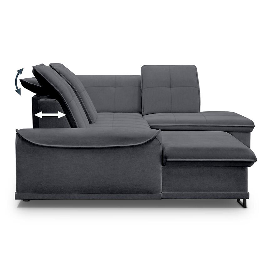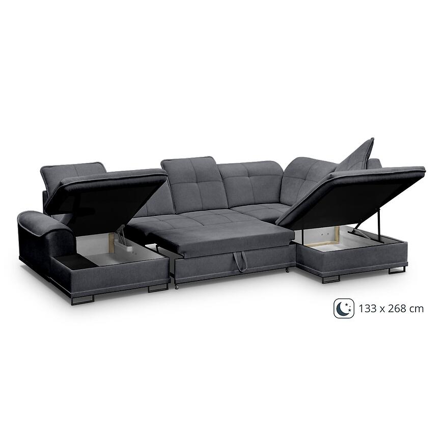 Narożnik BOSS to elegancja, wygoda i funkcjonalność. Jego bazowym kolorem jest szary. Kanapa narożna rozkładana to mebel idealny do wspólnego wypoczynku z rodziną i znajomymi. Również doskonale wkomponuje się biurowe aranżacje. Nowoczesny narożnik w ponadczasowym stylu z funkcją spania wyposażony jest w sprężyny faliste. Warto podkreślić, że sofa narożna posiada regulowane zagłówki oraz oparcie co zapewnia jeszcze większy komfort. Duży narożnik z dwoma pojemnikami to idealne rozwiązanie, które świetnie sprawdzi się pokoju dziennym. Meble wypoczynkowe wyposażone w funkcję spania to doskonały wybór na długie lata, które zapewnią wysoki komfort podczas wypoczynku.