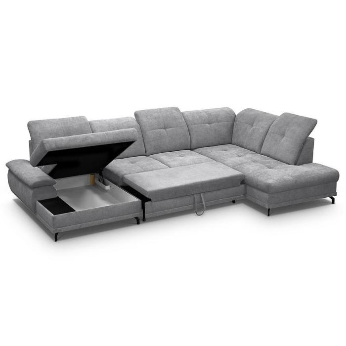 Narożnik Bruno z funkcją spania został pokryty tkaniną. Prostotę i łatwość użytkowania gwarantuje system rozkładania typu delfin. Jest to szybki, prosty i wygodny sposób rozkładania. Jest jednym z najbardziej popularnych systemów rozkładania, który jest wykorzystywany w narożnikach. Po rozłożeniu powierzchnia spania wynosi 135x280 cm. Mebel posiada pojemnik, do którego można schować pościel, dodatkowe koce czy też poduszki. W siedzisku zastosowano sprężynę falistą, która dostosowuje się do ciężaru i kształtu ciała, zapewniając tym samym wysoki komfort siedzenia. Ten niepowtarzalny mebel wypoczynkowy stworzono z myślą o funkcjonalności i eleganckim wyglądzie. Narożnik dostępny w wersji prawostronnej i lewostronnej.