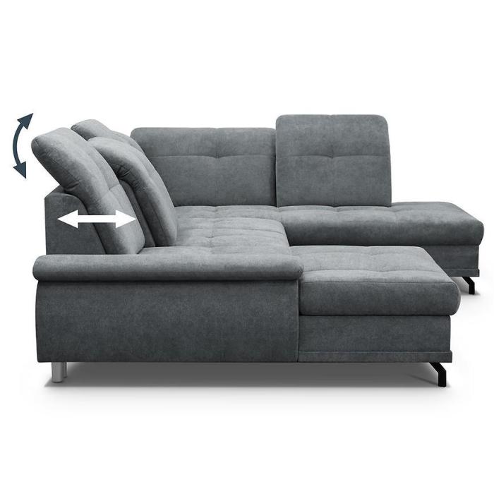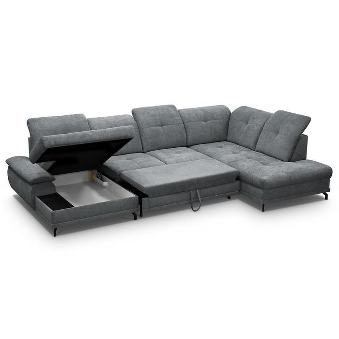 Narożnik Bruno z funkcją spania został pokryty tkaniną. Prostotę i łatwość użytkowania gwarantuje system rozkładania typu delfin. Jest to szybki, prosty i wygodny sposób rozkładania. Jest jednym z najbardziej popularnych systemów rozkładania, który jest wykorzystywany w narożnikach. Po rozłożeniu powierzchnia spania wynosi 135x280 cm. Mebel posiada pojemnik, do którego można schować pościel, dodatkowe koce czy też poduszki. W siedzisku zastosowano sprężynę falistą, która dostosowuje się do ciężaru i kształtu ciała, zapewniając tym samym wysoki komfort siedzenia. Ten niepowtarzalny mebel wypoczynkowy stworzono z myślą o funkcjonalności i eleganckim wyglądzie. Narożnik dostępny w wersji prawostronnej i lewostronnej.
