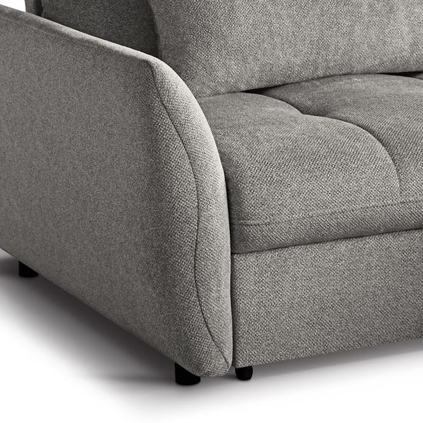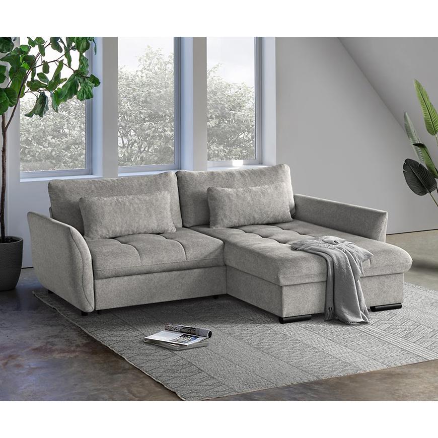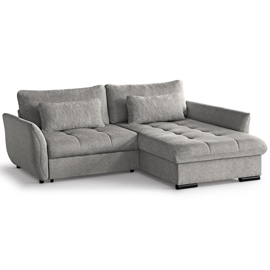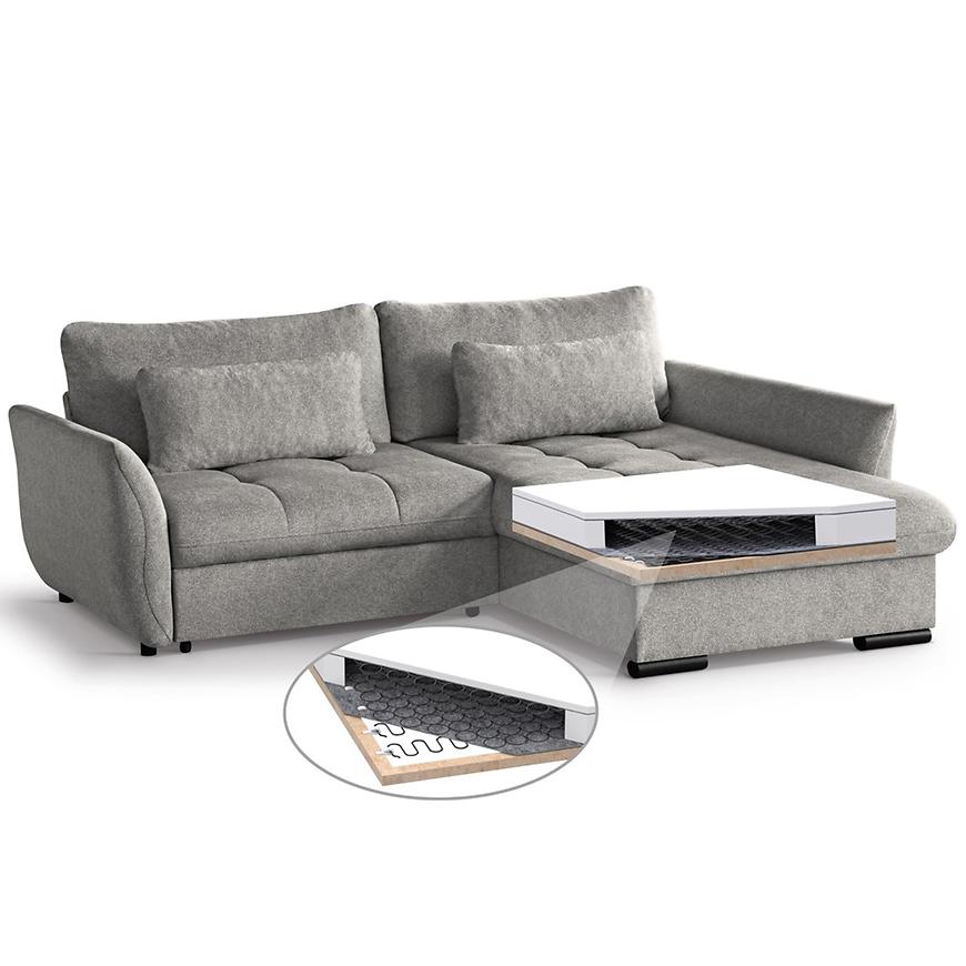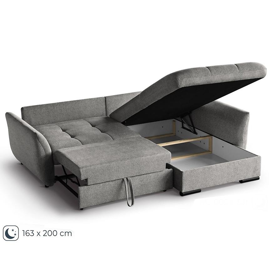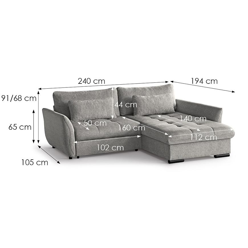 Narożnik Cafu L Louis 664 w brązowym kolorze to nowoczesny narożnik prawostronny w kształcie litery L o wymiarach 240x194 cm. Posiada funkcję spania z powierzchnią 200x163 cm i mechanizm rozkładania typu „delfin” z automatem do rozkładania. Siedzisko wypełnione jest sprężyną bonell i sprężyną falistą, jego wysokość wynosi 47 cm, a głębokość 70 cm. Narożnik wyposażony jest w jeden pojemnik na pościel, stoi na czarnych nogach, a eleganckie przeszycia dodają mu stylu. W zestawie znajdują się poduszki, natomiast zagłówki, podłokietniki i oparcie nie są regulowane. Mebel wymaga montażu i nie zawiera pufy.