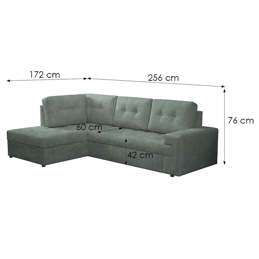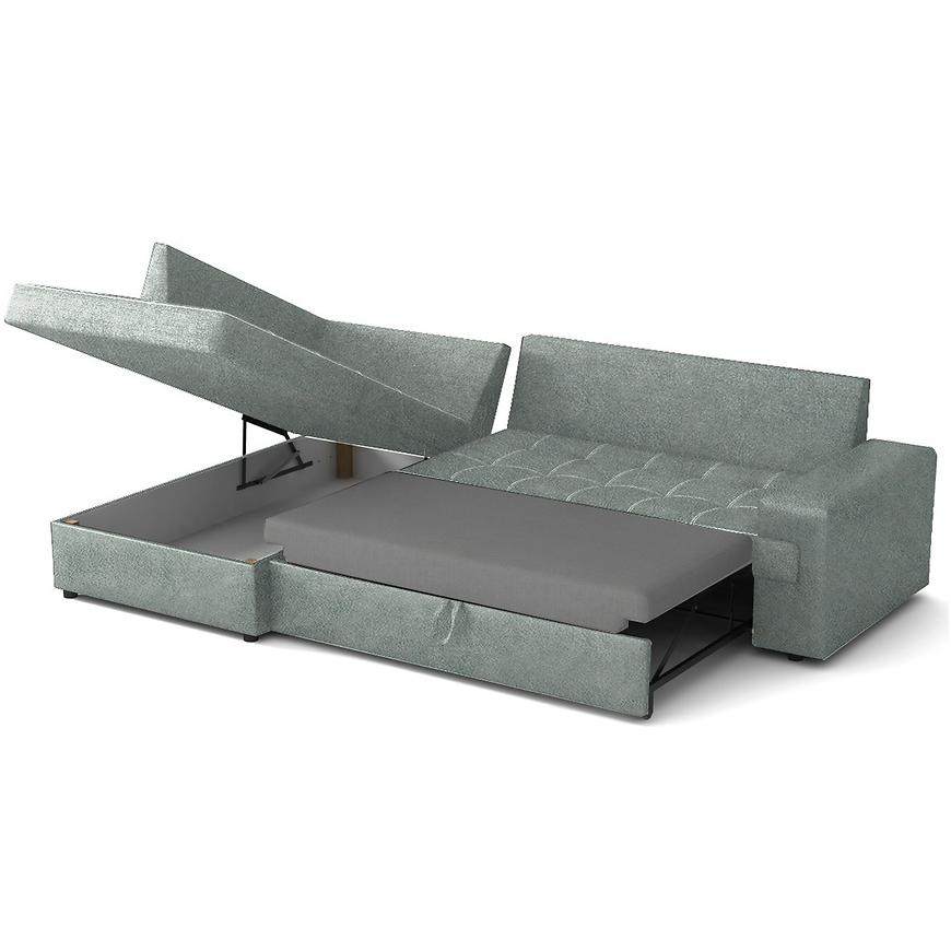 Narożnik Castello L Sally 11 to stylowy, lewostronny narożnik w odcieniu miętowym, który świetnie sprawdzi się w klasycznym salonie. Miękka tkanina i sprężyna falista zapewniają komfort wypoczynku. Narożnik wyposażony jest w funkcję spania (delfin) oraz pojemnik na pościel. W zestawie znajdują się poduszki, a całość osadzona jest na czarnych nogach. Wymiary: 256x172 cm, powierzchnia spania: 215x150 cm. Mebel do samodzielnego złożenia.