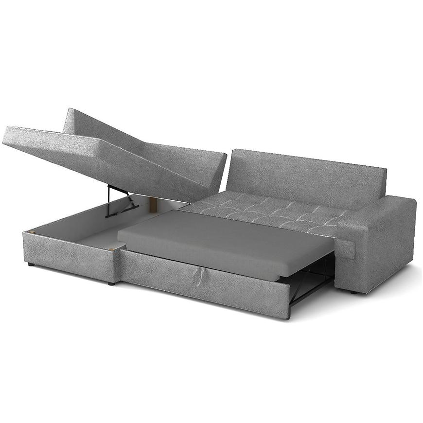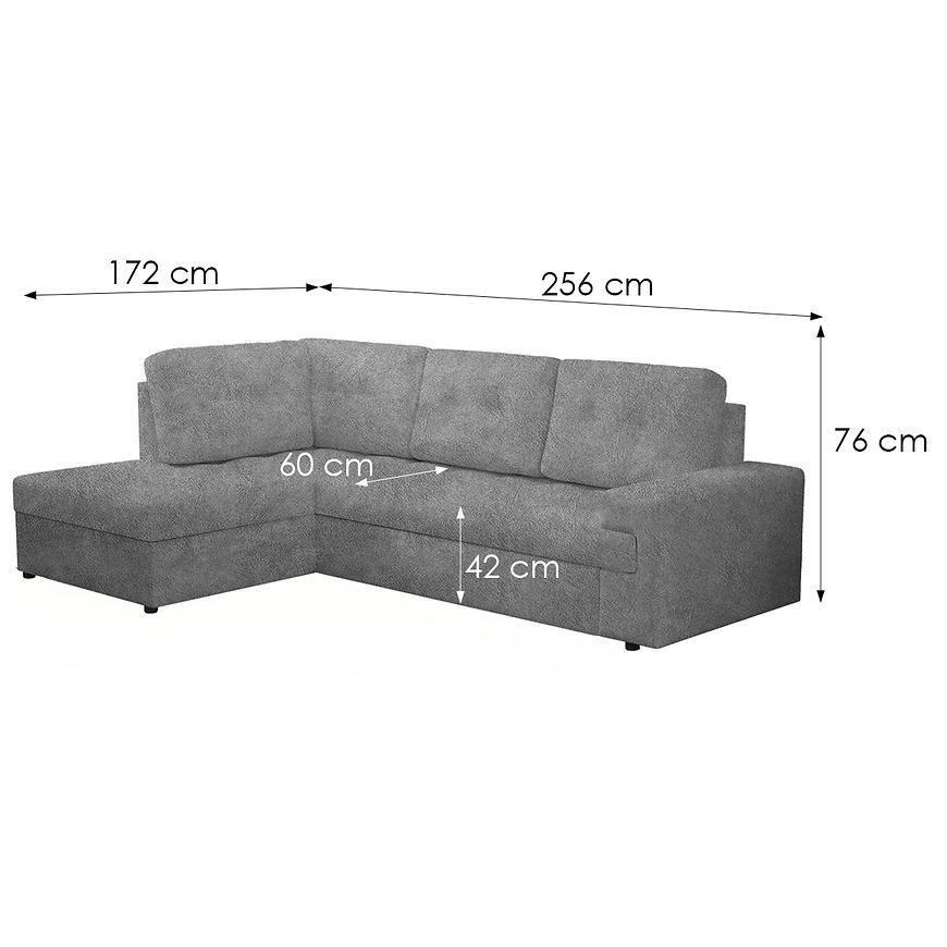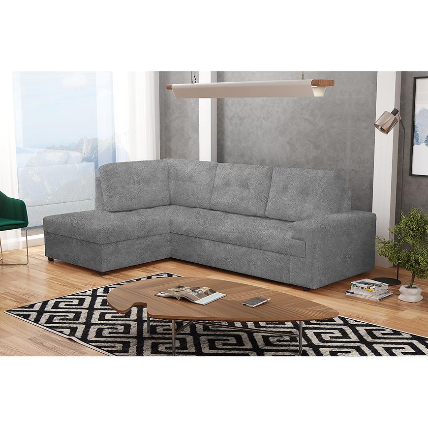 Narożnik Castello L Sally 8 to elegancki, lewostronny narożnik w klasycznym stylu, tapicerowany szarą tkaniną. Dzięki funkcji spania typu delfin i pojemnikowi na pościel idealnie sprawdzi się w codziennym użytkowaniu. Komfort zapewniają sprężyny faliste oraz dołączone poduszki. Stabilność konstrukcji gwarantują czarne nogi. Wymiary: 256x172 cm, powierzchnia spania: 215x150 cm. Mebel do samodzielnego montażu.