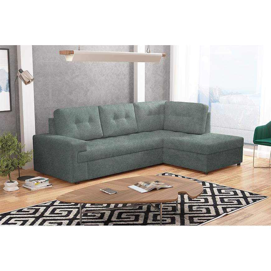 Narożnik Castello P Sally 11 to klasyczny narożnik w kształcie litery L, idealny do salonu. Tapicerowany miękką tkaniną w kolorze miętowym, wyposażony w wygodne siedzisko na sprężynie falistej. Posiada funkcję spania z rozkładaniem typu delfin oraz praktyczny pojemnik na pościel. W zestawie znajdują się poduszki, a stabilność zapewniają czarne nogi. Wymiary narożnika to 256x172 cm, powierzchnia spania 215x150 cm. Wymaga samodzielnego montażu.