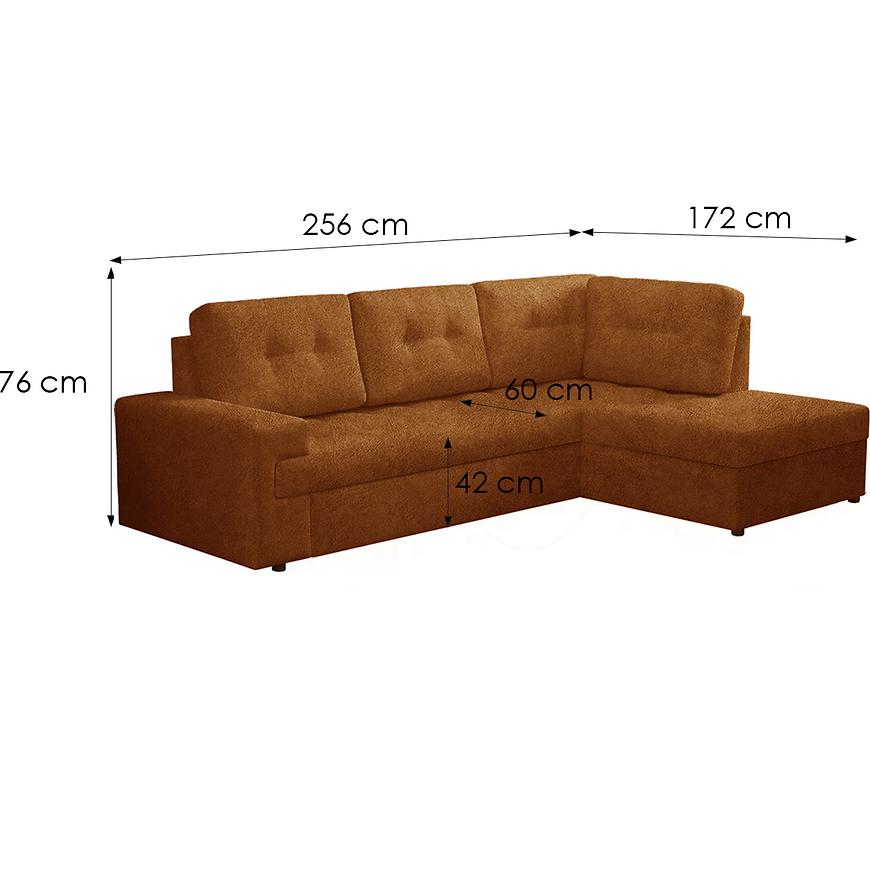 Narożnik Castello P Sally 14 to klasyczny narożnik w kształcie litery L, przeznaczony do salonu. Tapicerowany tkaniną w modnym musztardowym kolorze, oferuje komfortowe siedzisko ze sprężyną falistą. Wyposażony w funkcję spania z systemem rozkładania typu delfin oraz pojemnik na pościel. Czarne nogi zapewniają stabilność, a poduszki dołączone do zestawu zwiększają wygodę. Wymiary: 256x172 cm, powierzchnia spania: 215x150 cm. Wymaga samodzielnego montażu.