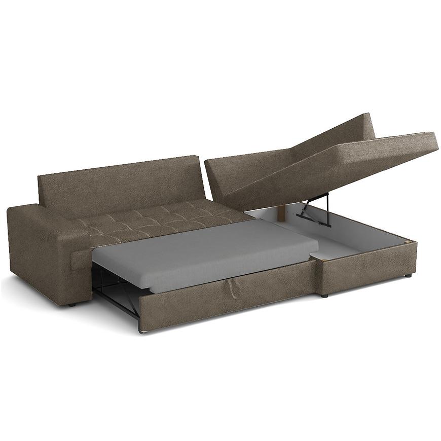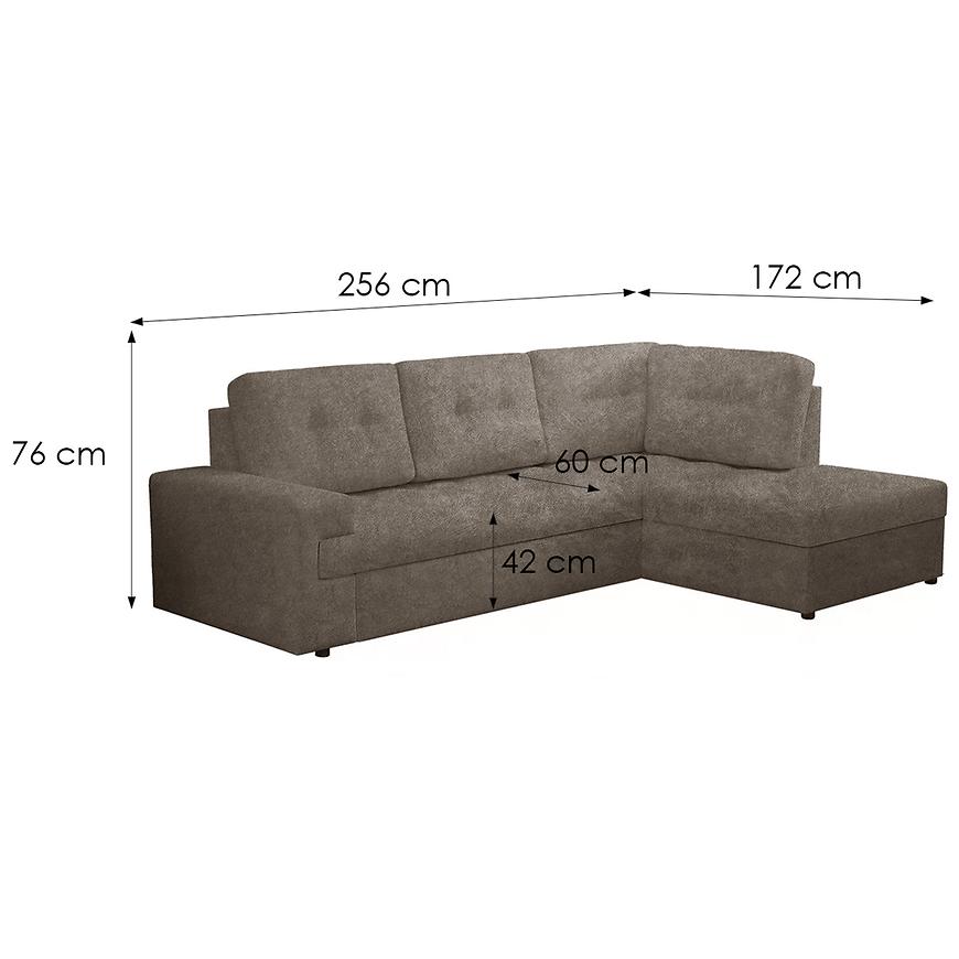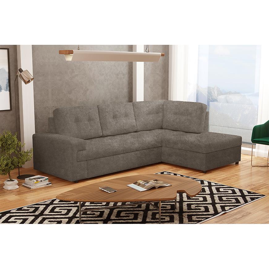 Narożnik Castello P Sally 3 to klasyczny mebel w kształcie litery L, idealny do salonu. Tapicerowany trwałą tkaniną w eleganckim brązowym kolorze, zapewnia komfort dzięki siedzisku na sprężynie falistej. Posiada funkcję spania z systemem delfin oraz pojemnik na pościel. W zestawie znajdują się dopasowane poduszki, a całość opiera się na czarnych nogach. Wymiary narożnika: 256x172 cm, powierzchnia spania: 215x150 cm. Mebel do samodzielnego złożenia.