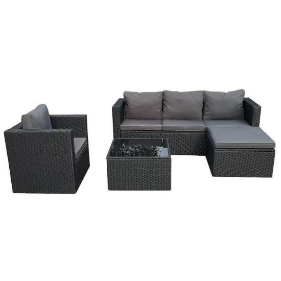 Komplet mebli technorattanowych to idealne rozwiązanie do każdego ogrodu czy na taras gdzie z przyjemnością spędzisz wszystkie letnie popołudnia i weekendy wraz ze znajomymi czy rodziną. Komplet składa się z 4 elementów wraz z poduszkami. Blat stolika jest wytrzymały, wykonany bowiem ze szkła hartowanego, konstrukcja z kolei jest metalowa.