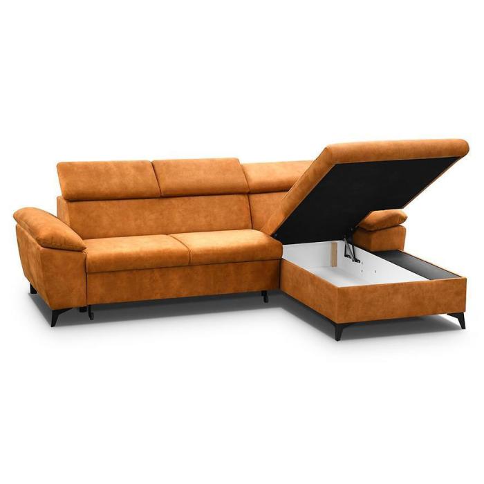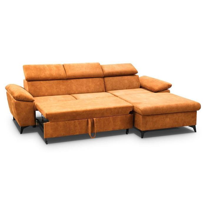 Narożnik Colin z funkcją spania został pokryty tkaniną. Prostotę i łatwość użytkowania gwarantuje system rozkładania typu delfin. Jest to szybki, prosty i wygodny sposób rozkładania. Jest jednym z najbardziej popularnych systemów rozkładania, który jest wykorzystywany w narożnikach. Po rozłożeniu to okazjonalne miejsce do spania o wymiarach 126x210 cm. Mebel posiada pojemnik, do którego można schować pościel, dodatkowe koce czy też poduszki. W siedzisku zastosowano sprężynę falistą, która dostosowuje się do ciężaru i kształtu ciała, zapewniając tym samym wysoki komfort siedzenia. Ten niepowtarzalny mebel wypoczynkowy stworzono z myślą o funkcjonalności i eleganckim wyglądzie. Narożnik dostępny w wersji prawostronnej i lewostronnej.