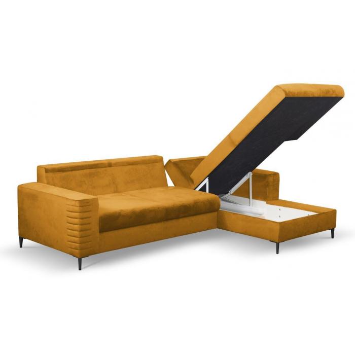 Nowoczesny narożnik Collin z pojemnikiem w otomanie, pozwala na przechowanie kompletu pościeli oraz innych tekstylia domowe na które do tej pory brakowało miejsca.