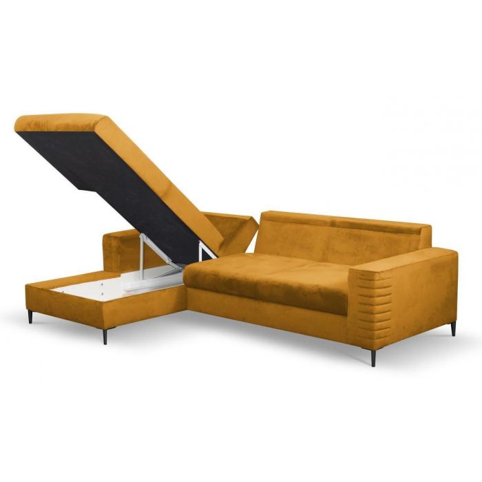 Nowoczesny narożnik Collin z pojemnikiem w otomanie, pozwala na przechowanie kompletu pościeli oraz innych tekstylia domowe na które do tej pory brakowało miejsca.