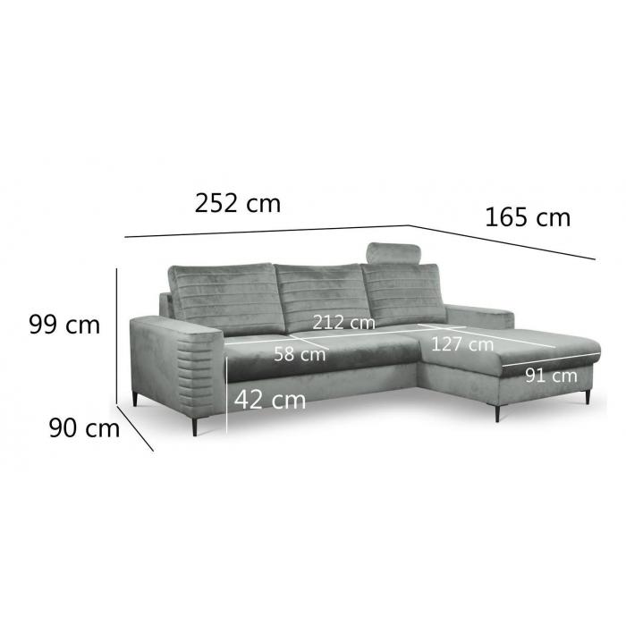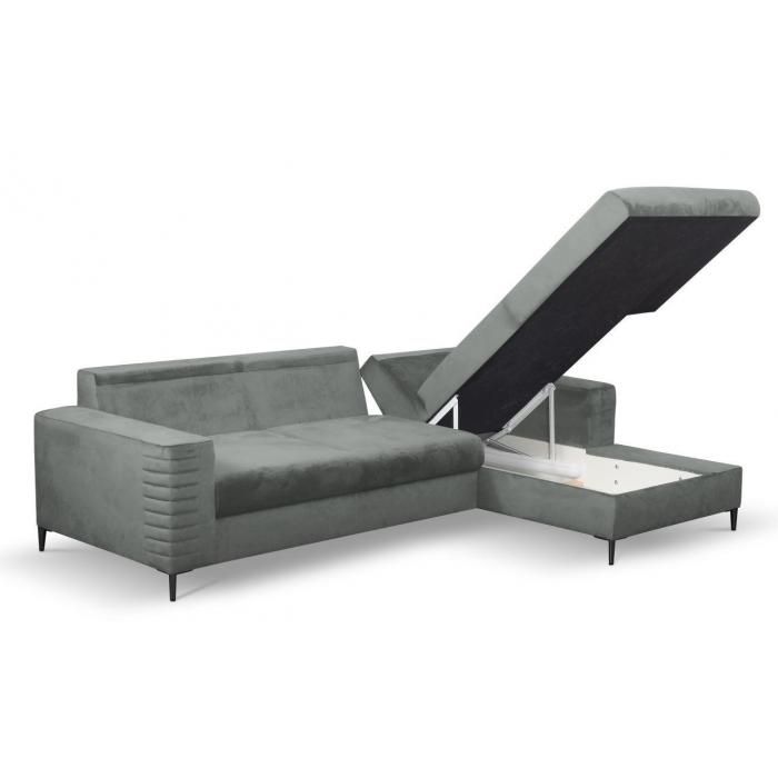 Nowoczesny narożnik Collin z pojemnikiem w otomanie, pozwala na przechowanie kompletu pościeli oraz innych tekstylia domowe, na które do tej pory brakowało miejsca.