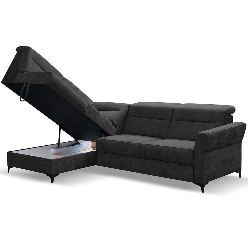 W narożniku znajduje się pojemnik na pościel, który pomieści kołdry, poduszki i pościel, co pozwala utrzymać porządek w salonie. Jeden duży schowek zapewnia wystarczającą przestrzeń do przechowywania niezbędnych rzeczy, dzięki czemu mebel łączy w sobie funkcję wypoczynkową i praktyczną.