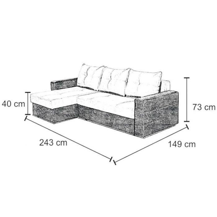 Meble wypoczynkowe z funkcją spania okazjonalnego są najbardziej praktyczne na co dzień - w dzień mogą pełnić rolę wygodnego siedziska dla całej rodziny, w nocy z kolei dużego łóżka. Powierzchnia spania po rozłożeniu wynosi 130x204 cm, optymalna wielkość dla dwóch osób. Pojemnik na pościel zapewnia dodatkowe miejsce do przechowywania. To idealne rozwiązanie do małych mieszkań, w których powierzchnia do zagospodarowania jest ograniczona. Zastosowany sposób rozkładania to DL.