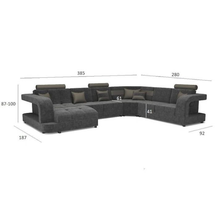 Narożnik z serii Douglas C Forever jest ciekawym urozmaiceniem wnętrz, spełni swoją funkcje w salonie, a także w pokoju dziennym, dzięki klasycznym kolorom. Będzie szczególnie dobrze komponował się w jasnych i przestronnych wnętrzach. To mebel wypoczynkowy w kształcie litery U o wymiarach 385x280x100 cm, który będzie szykowną ozdobą salonu lub pokoju dziennego. Charakteryzuje się nie tylko atrakcyjnym wyglądem, ale także wysoką funkcjonalnością. Narożnik został wykonany z tkaniny z połączeniem ekoskóry. Nóżki w kolorze czarnym zapewniają stabilność narożnika. Dodatkowo w komplecie są poduszki w podobnej kolorystyce. Narożnik dostępny w wersji prawej i lewej.