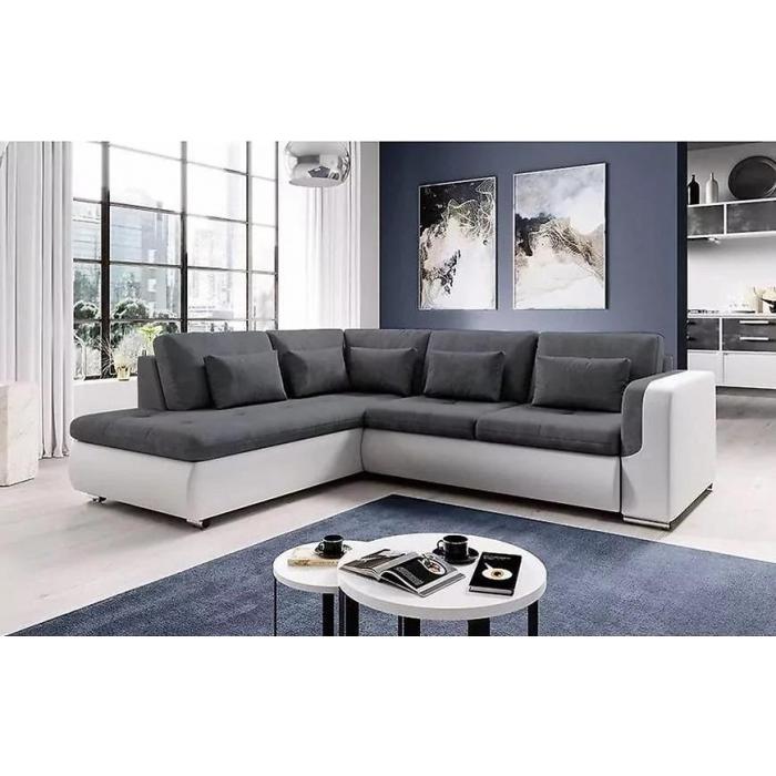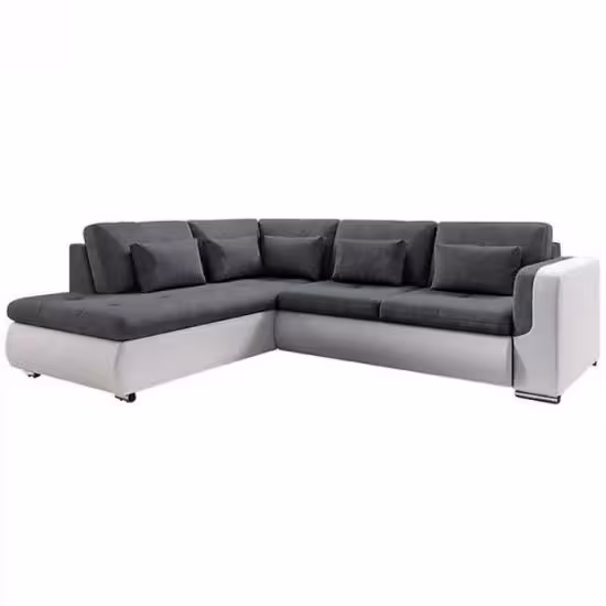 Kanapa narożna Fado tapicerowana jest tkaniną wykonaną z tworzywa sztucznego i ekoskórą. Oparcie oraz siedzisko wypełnione są wygodną sprężyną falistą, która zapewnia komfortowy wypoczynek. Dodatkowe elementy ozdobne, które stanowią poduszki oparciowe nadadzą przytulnego charakteru w Twoim salonie.