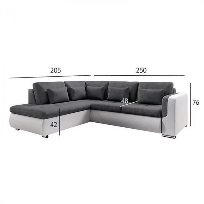 Stylowy, nowoczesny narożnik rozkładany z serii Fado to świetne rozwiązanie do zarówno do dużego i małego salonu. Zastosowany sposób rozkładania typu delfin sprawia, że montaż jest łatwy i szybki. Powierzchnia po rozłożeniu wynosi 135x205cm - to optymalna powierzchnia dla dwóch osób.