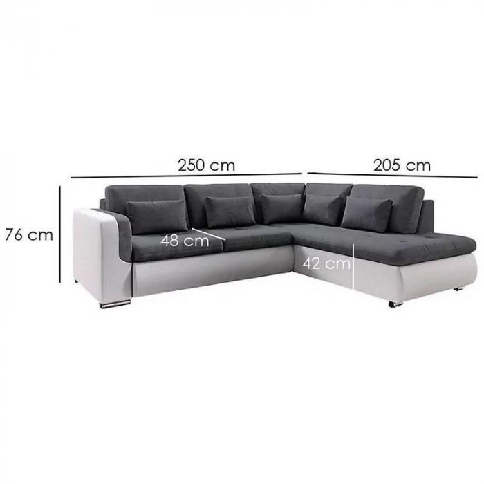 Stylowy, nowoczesny narożnik rozkładany z serii Fado to świetne rozwiązanie do zarówno do dużego i małego salonu. Zastosowany sposób rozkładania typu delfin sprawia, że montaż jest łatwy i szybki. Powierzchnia po rozłożeniu wynosi 135x205cm - to optymalna powierzchnia dla dwóch osób.