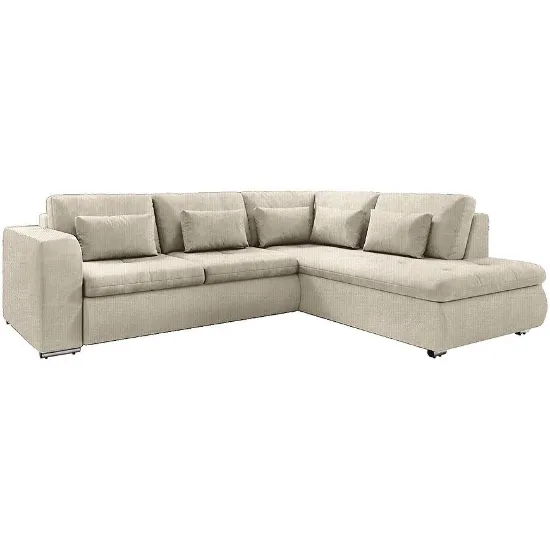 Wypełnienie siedziska sprężyną falistą gwarantuje optymalne podparcie i wygodę podczas codziennego wypoczynku. Model Fado Vardo wyposażony jest w praktyczną funkcję spania okazjonalnego, a system rozkładania typu delfin umożliwia szybkie i łatwe przekształcenie narożnika w wygodne łóżko o powierzchni spania 205x135 cm. W komplecie znajdują się poduszki, które podnoszą komfort użytkowania i stanowią atrakcyjny element dekoracyjny.