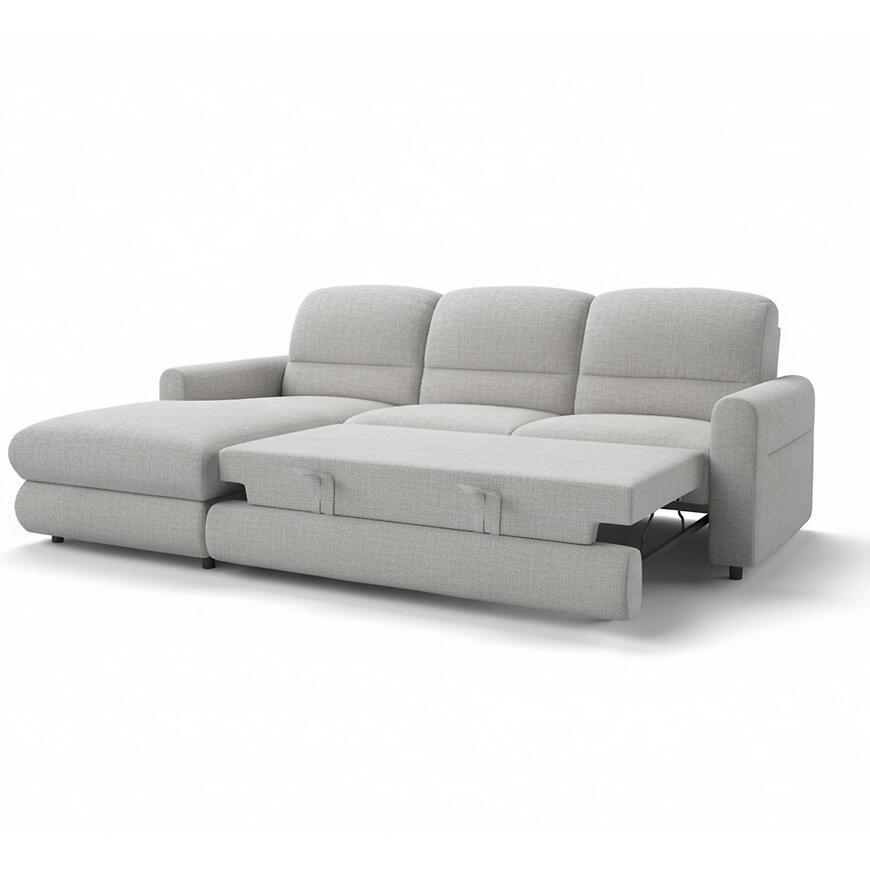 Narożnik Fiord L Rebel 5 to połączenie wygody, nowoczesnego stylu i funkcjonalności. Sprawdzi się zarówno podczas codziennego odpoczynku, jak i jako dodatkowe miejsce do spania dla gości. Beżowo-szara tapicerka szenilowa wnosi do wnętrza przytulny, elegancki akcent.